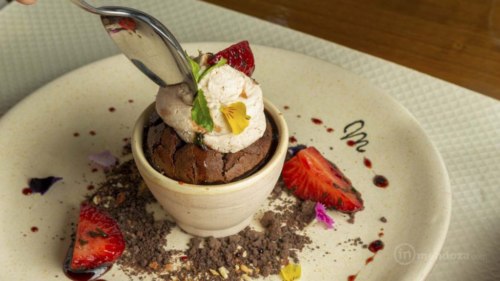 El principal propone ojo de bife o costillas de tres cocciones con papa crocante al limón, chutney de repollo colorado y tomate confitado. Cinta de espinaca, crema de tomate cherries, hongo de pino y brócolis más semillas de girasol crocante, o trucha de Malargüe acompañada de ensalada fresca de coliflor y vegetales más puré de batata con café.