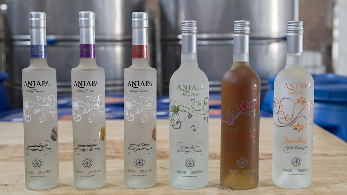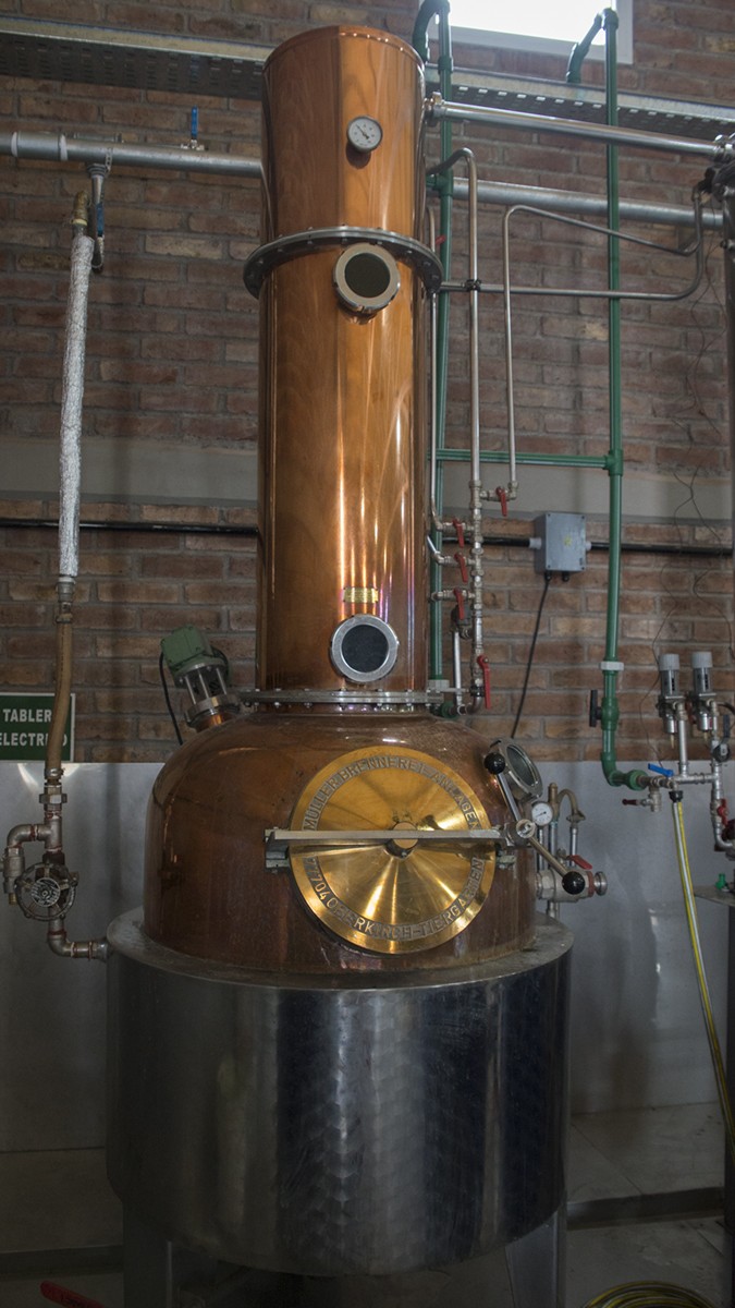 En las nuevas instalaciones de la destilería Sol de Los Andes hay dos alambiques funcionando, uno destila agua y el otro gin, aunque su uso más habitual es elaborar grapa, la famosa Aniapa creada por mendocinos que todos los años, desde 2009, trae de Austria medallas de plata y oro a las mejores grapas del mundo.