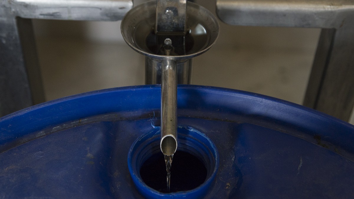 «Traemos el orujo en bolsones y los cargamos en los alambiques verticalmente. A ese orujo lo destilamos, le sacamos el espíritu, por eso estas bebidas se llaman espirituosas», cuenta. «Hacer una buena grapa es caro porque por mil kilos de orujo vas a sacar solamente 30 litros de alcohol».