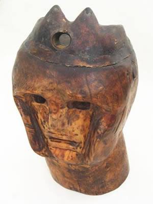 Entonces nos muestra un águila que surge de la madera con encastres que le dan forma, y una cabeza maravillosa que parece un ser del espacio, un guerrero romano, o ambas cosas.