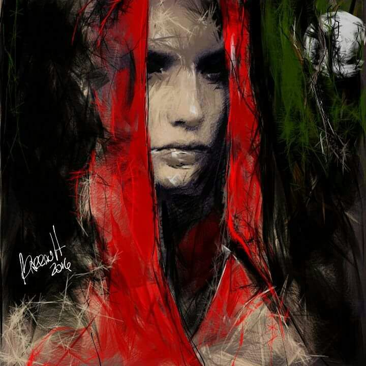 «Me involucro mucho con la tecnología, soy muy fan de los recursos que brinda, muchas veces, por falta de tiempo, el ritual de prepararme para pintar no es posible; entonces pienso ¿qué mejor que desde la cama dibujar ideas en la tablet, guardar, retocar, probar colores, volver atrás? Valoro mucho los beneficios y la apertura que eso genera, son el disparador para obras en un lienzo de dos por dos, además de mantener el oficio del dibujo. Hoy en día las posibilidades de un lápiz óptico y una tablet son las misma que las que te da el papel», confió.