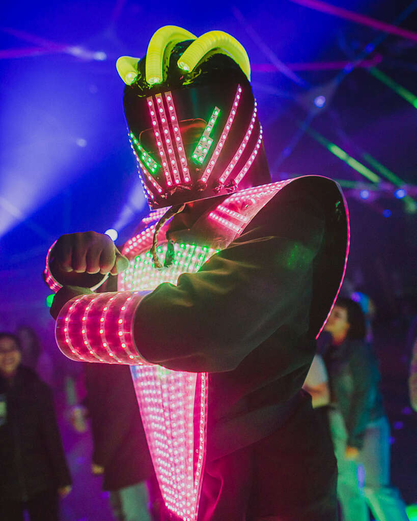 «La gente se va a encontrar con una evento que está 100% ambientado con una temática basada en lo que es la Inteligencia Artificial; desde la propuesta escénica, artística, performática y visual. Es una puesta bien agresiva, vamos a ir absolutamente con todo. Además, nos hemos valido de un sistema de IA para poder ir programando los distintos momentos de la noche en función de lo que hemos detectado como necesidad del público».