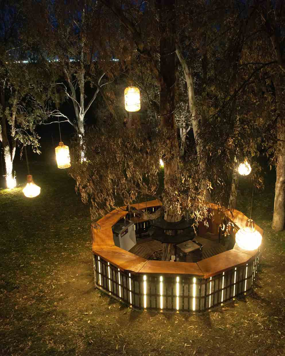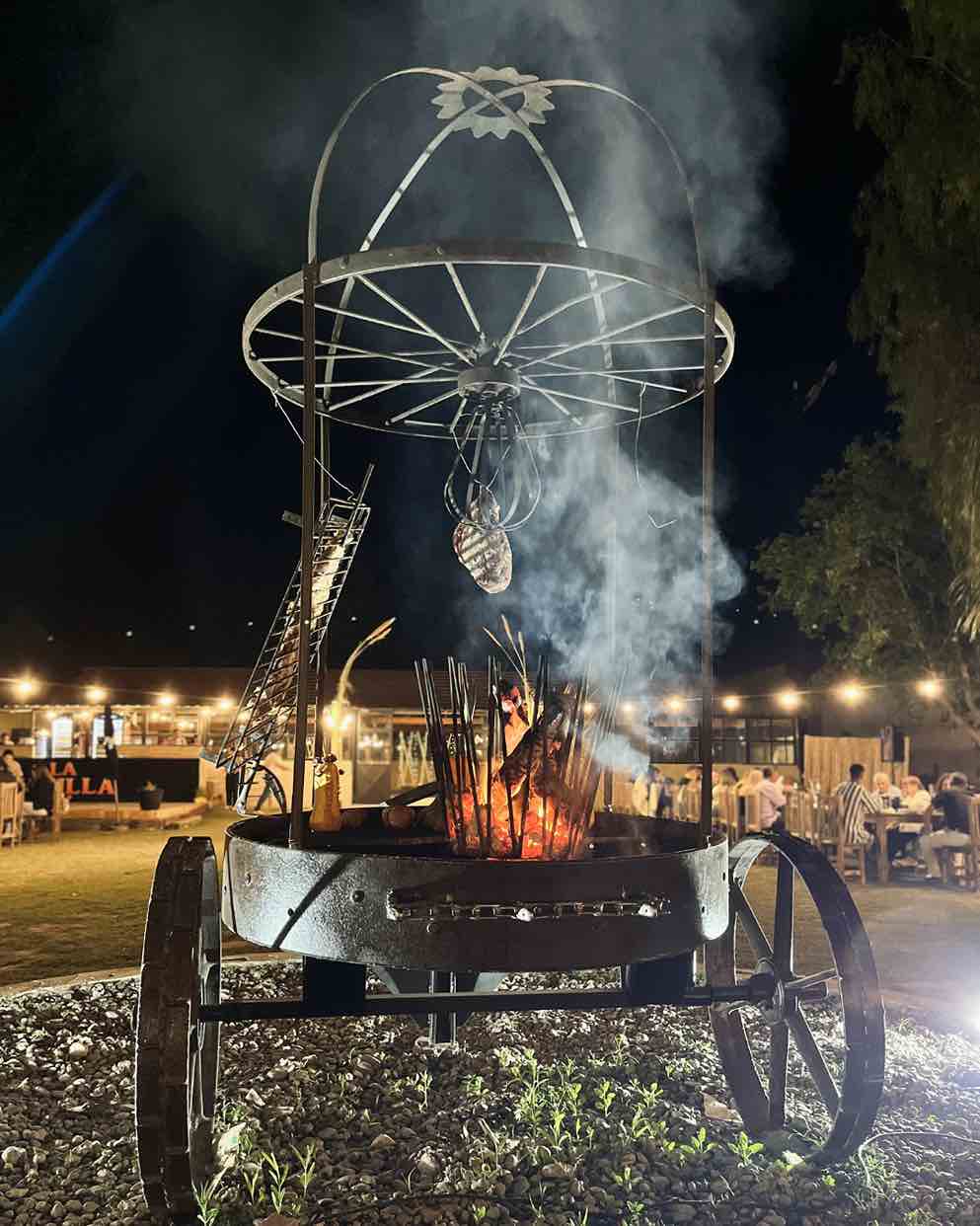 El fogón central al aire libre es el corazón del lugar: allí se cocina a la vista y se comparte la experiencia. Además, La Jarilla organiza sunsets, ferias, cine al aire libre y shows musicales, convirtiéndose en un nuevo punto de encuentro para quienes buscan disfrutar la noche del Este entre brasas, buena música y naturaleza.