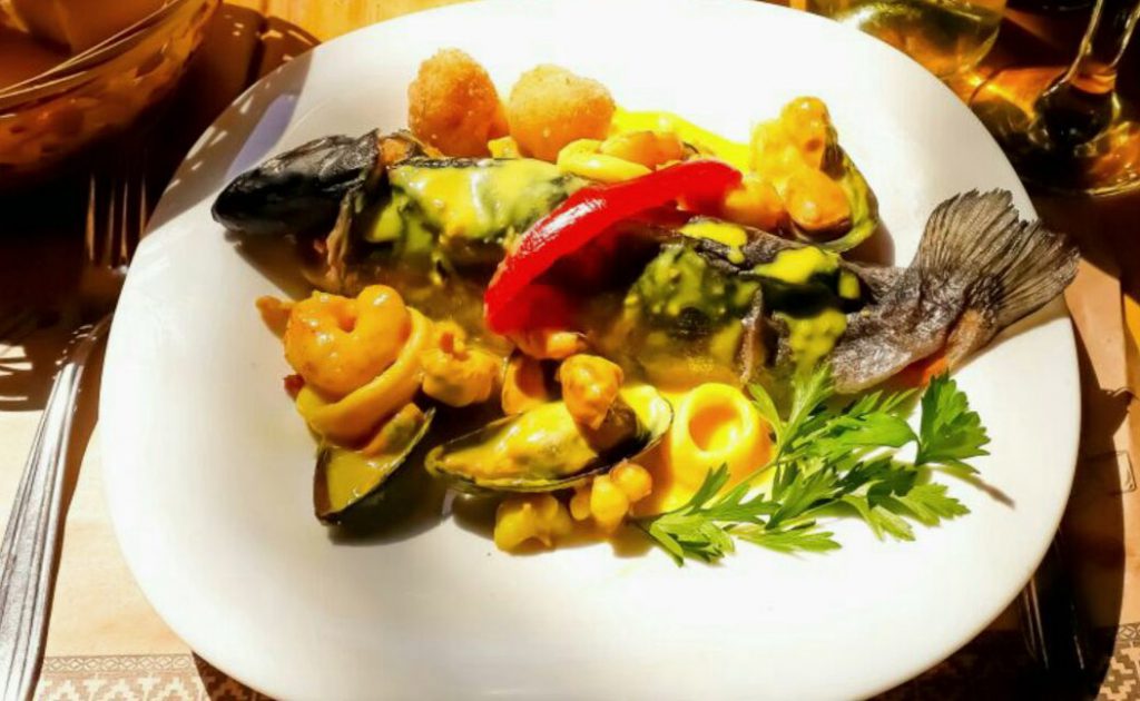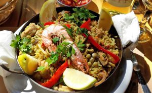 En la sección de la carta de pescados y mariscos se destaca una exquisita paella que se sirve en porciones abundantes y para compartir.
