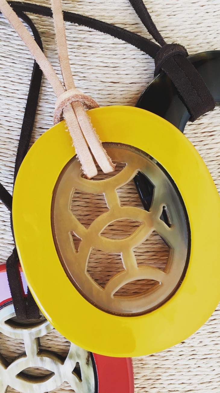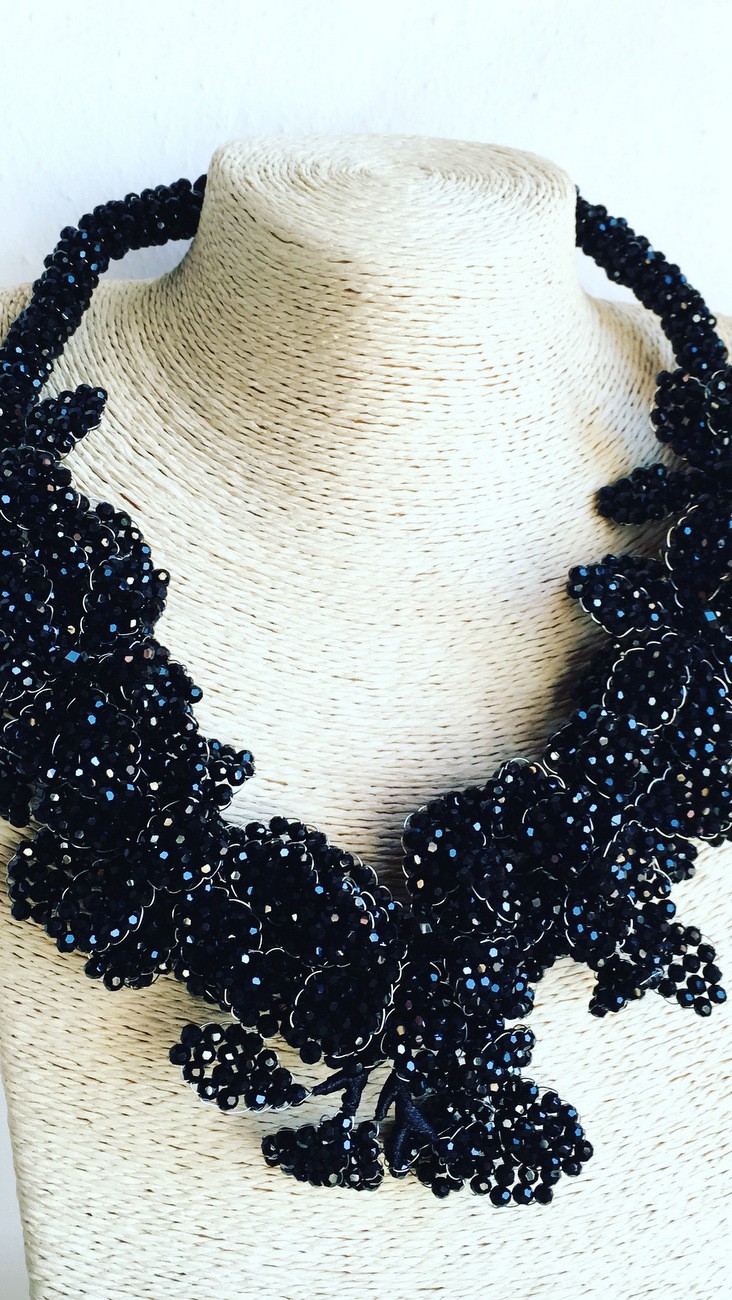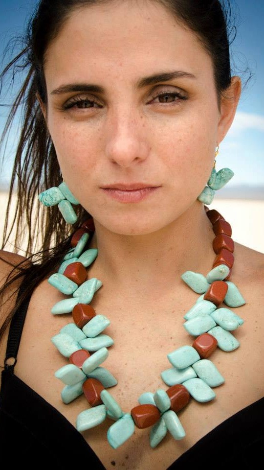 Elvi es la principal modelo y expositora de sus piezas, ya que casi siempre lleva puesto uno de sus collares, o anillos, y no solo para mostrarlos. «Me encanta» –dice– «a veces me levanto y me pongo un collar enorme solo para estar en mi casa, son parte del outfit».