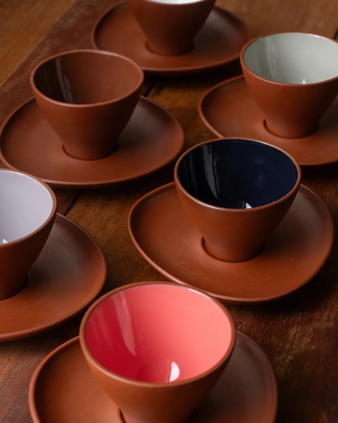 Hecha en gres rojo andino y esmaltada con precisión en su interior, esta taza no solo redefine la experiencia de lo clásico sino que la transforma en un ritual cotidiano que conecta con el origen. Su estética sobria y sutil refleja el legado de Colbo, pero también su capacidad de renovación. No es solo un objeto utilitario, es una pieza con alma.