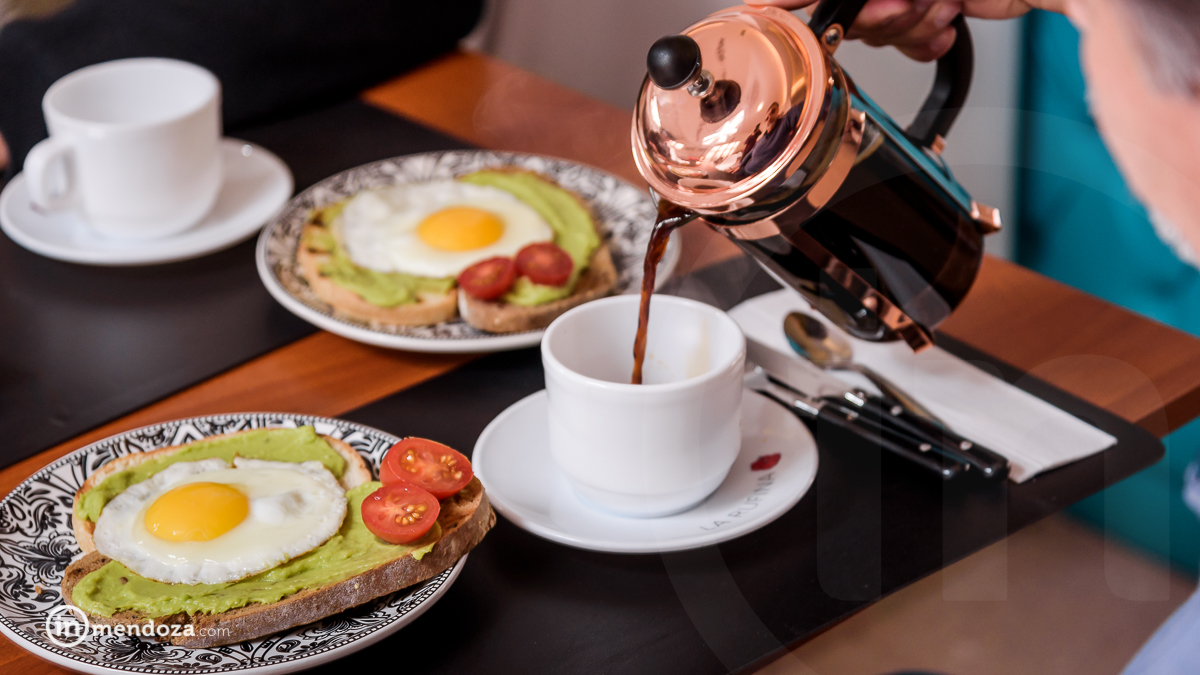 El toque distintivo lo dan las tostadas o chipás con palta, una delicia que adoramos los mendocinos. También hay wafles, cupcakes, budines inéditos, yogures con granola, nutella o crema con frutillas; dulce de leche y crema de maní con banana, porciones de tortas como el cheescake de frutos rojos o el marquise de chocolate. Hay opciones saladas y menú para celíacos. Las infusiones que acompañan incluyen diversidad de té en hebra, cafecitos y mate. Para los que prefieran algo fresco, se ofrecen jugos y licuados.
