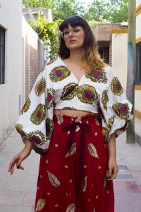 Leo Peralta vive en Europa hace varios años y presenta todas sus colecciones en forma de performance. Fue convocado a trabajar como voluntario en Madagascar para la ONG Yamuna. «Básicamente me invitaron junto a mi amiga Erika Tanquilevich, artista mendocina radicada en Buenos Aires, a dar un taller de formación práctica en corte, confección y marroquinería a un grupo de mujeres, en situación de calle, violencia y pobreza extrema, que trabajan en una cooperativa. Madagascar es uno de los países más pobres del mundo y la misión requería de una gran fortaleza personal; fueron dos semanas intensas» nos cuenta Leo haciendo una introducción a lo que viene para conocer su última colección. «Al volver de este viaje sentí que volvía «manchado del rojo más rojo, y el cielo más cielo», que la tierra era tan roja que no podía encontrar otro adjetivo para describirla, y con el cielo me pasaba igual, gigante, inmenso…tan cielo, todo vibrando en su máxima esencia» agrega.