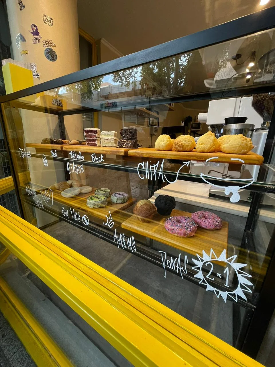 La propuesta combina café de especialidad con pastelería y comida rápida, influenciada por cafeterías modernas y sabores simples pero bien hechos. Entre sus productos estrella están el tostado de jamón y queso con pesto de rúcula, los chipá y alfajores (símbolos absolutos del lugar) y bebidas exclusivas creadas por su equipo, como el Blueberry Coco Latte, el Strawberry Latte y el Maracuyá Latte. Cada preparación parte de ingredientes frescos y elaboraciones hechas al momento, acompañadas por granos de especialidad que elevan la propuesta.