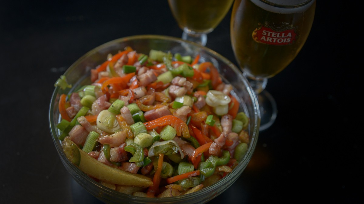 - Papas malditas: con pimientos, panceta y verdeo.