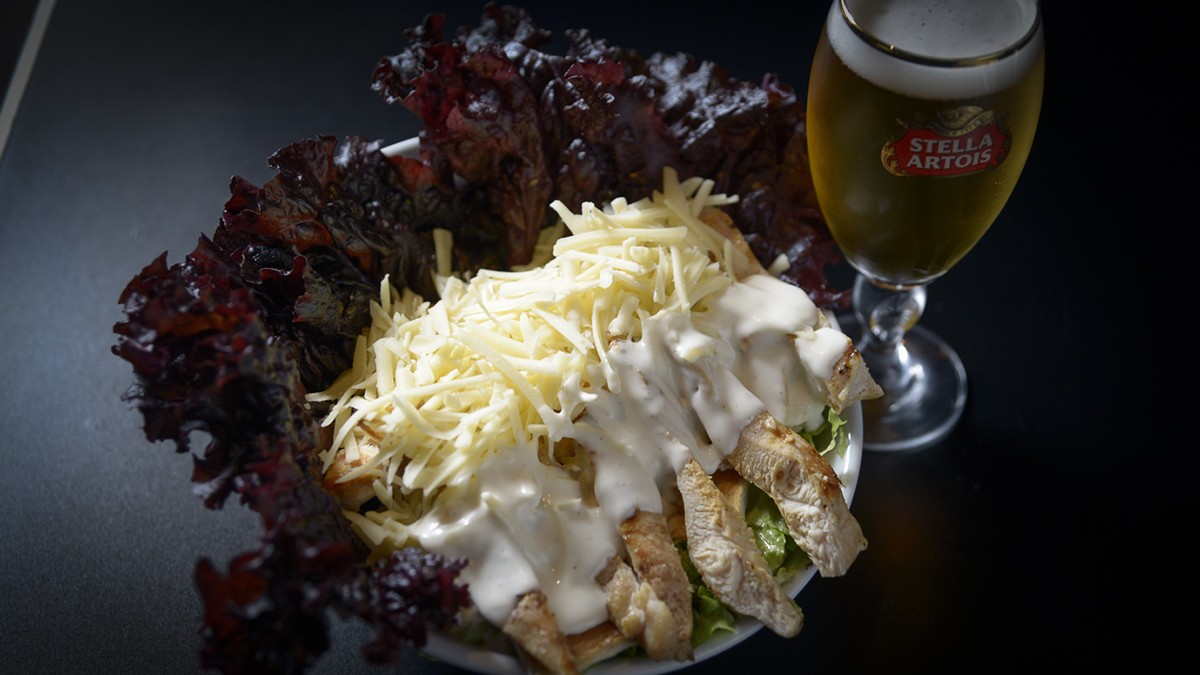- Ensalada César: pollo, lechuga, queso parmesano y crutones.
