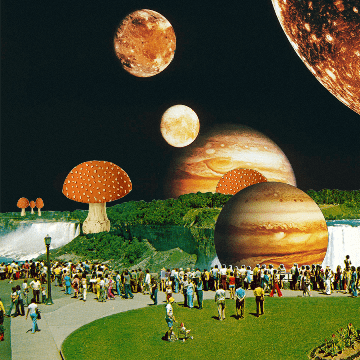 «En noviembre de 2012 me abro una cuenta en Tumblr y empiezo a seleccionar imágenes surtidas, siempre vintage, con diferentes estilos. Es ahí cuando las empiezo a mezclar. Exactamente el 17 de diciembre» me cuenta, complacido de su quehacer artístico. Observar un collage de Collage al Infinito, seudónimo que utiliza para firmar sus obras, es como viajar a través de un mundo desconocido, descontrolado, a otra dimensión de ambigüedad y psicodelia infinita. Sus temas son surrealistas: «Me gustan las décadas de los ’50, ’60 y ’70 y a veces de los ’80. Uso imágenes de revistas Harper’s Bazaar, National Geographic y Vogue. También de la red social Flickr. Se me dispara una idea, voy probando, componiendo, haciendo una yuxtaposición de los elementos que se me ocurren. Es espontáneo, pero me lleva tiempo».