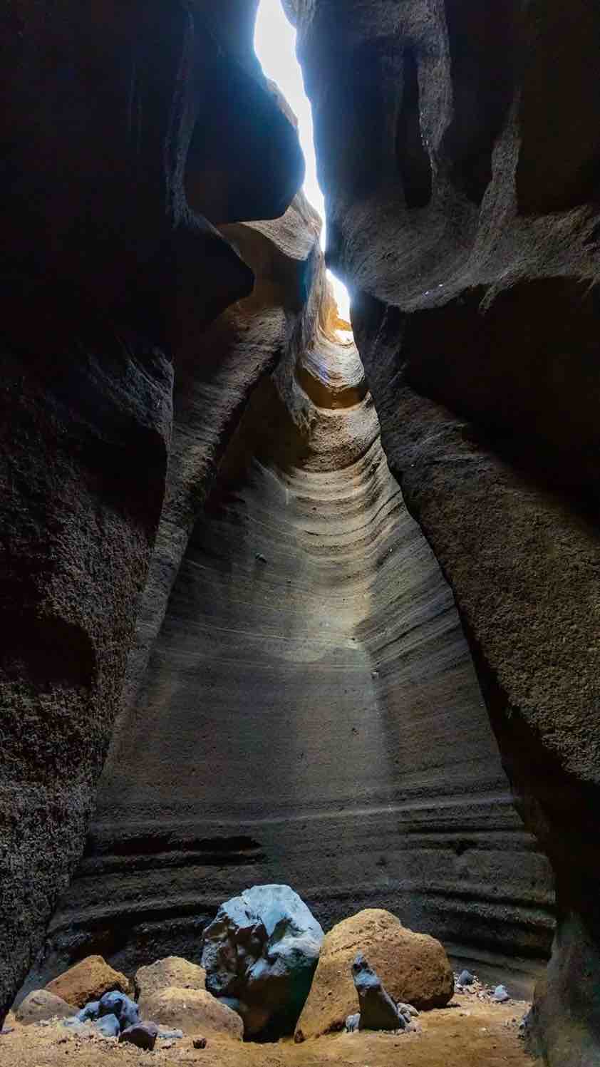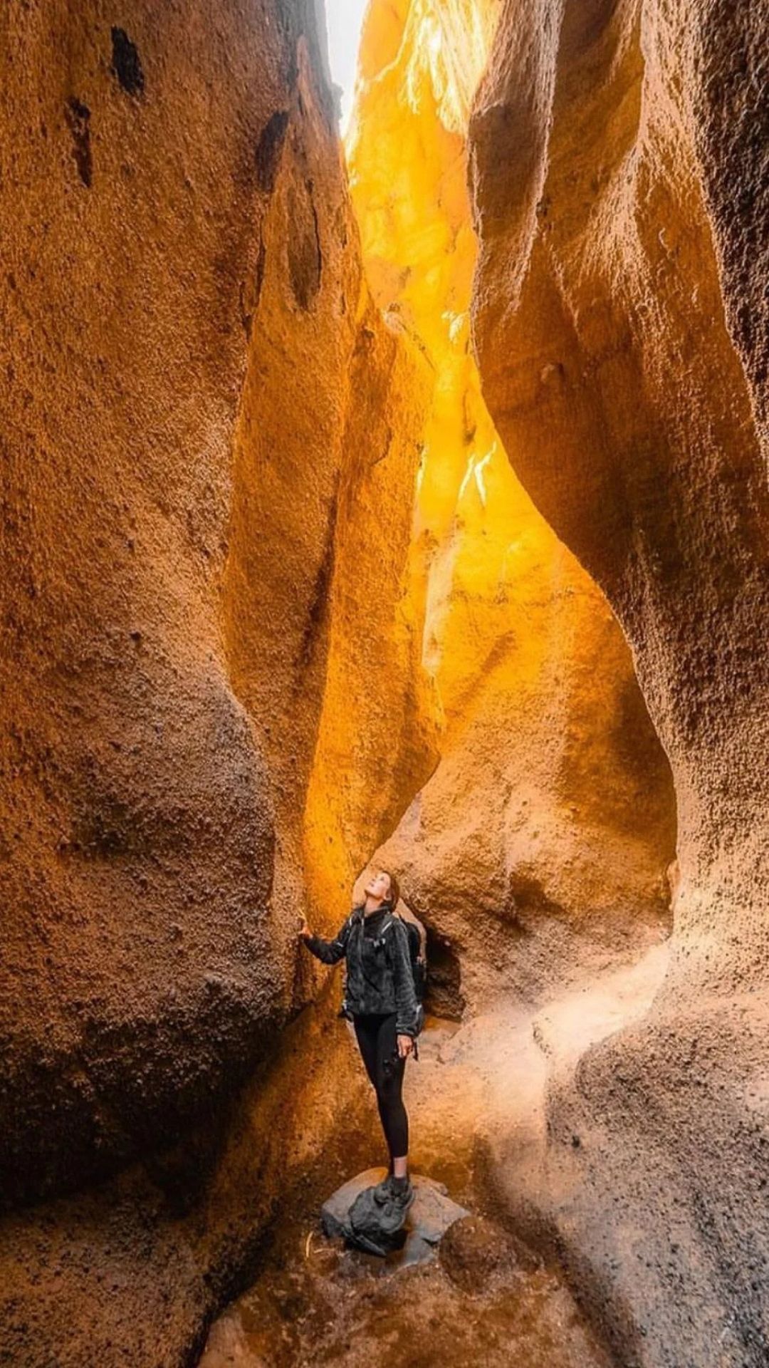 También en Malargüe, el Volcán Malacara ofrece una experiencia distinta al resto del circuito volcánico de la zona: acá no se observa desde afuera, sino que te adentras en él. Con poco más de 1.800 metros de altura, este volcán tuvo hace unos 10.000 años una violenta erupción hidromagmática (cuando la lava entra en contacto con agua). Lo que dejó esa explosión, sumado a milenios de erosión por viento y agua, formó un laberinto de pasadizos, cárcavas y chimeneas que alcanzan los 30 metros de altura.