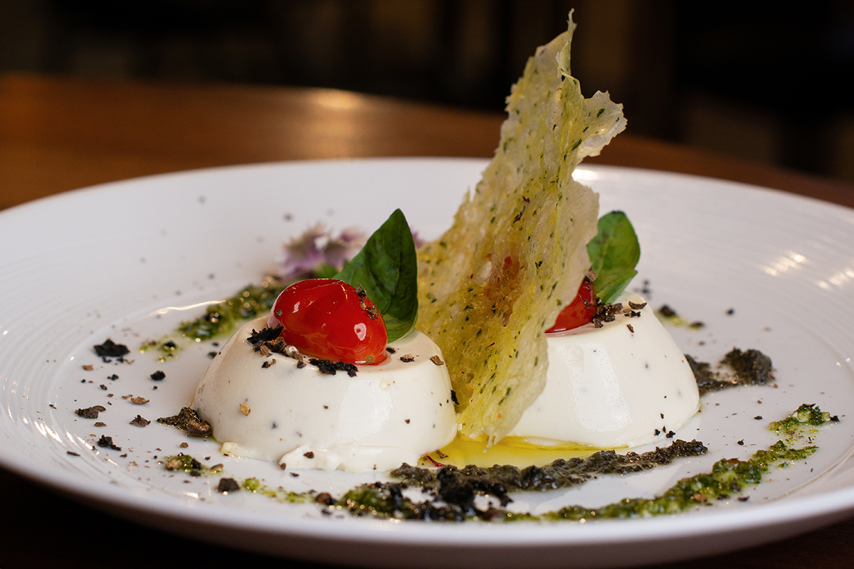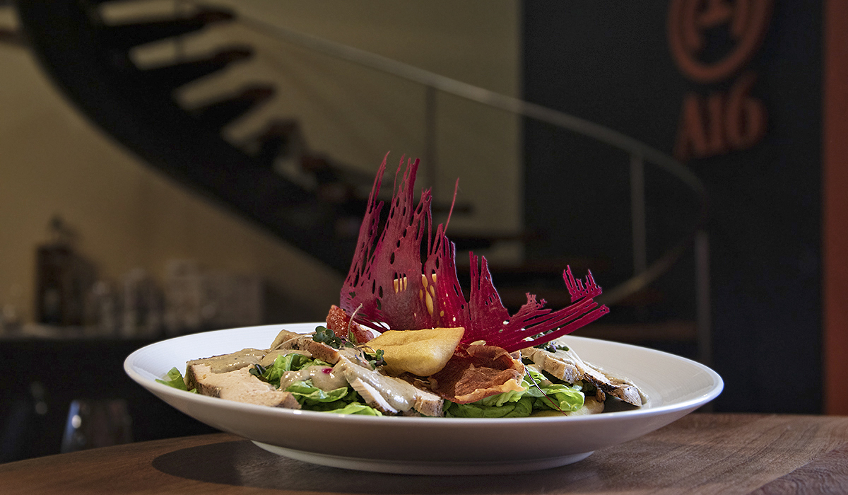 La frescura entra a la carta de la mano de dos ensaladas tradicionales, pero con personalidad e identidad propia. Se trata de la ensalada Caprese -una combinación de panacota de queso y pimientas, cherry confit, tapenade de olivas negras, aceite de albahaca y frutos secos-, y la ensalada César -la cual contiene entre sus ingredientes tortilla de maíz, mix de verdes, pollo confitado en especias y crocante de Parma. «La presentación y la forma de degustarlas son distintas. Trabajamos con diferentes técnicas, utilizando mucho los colores, los aromáticos como el cilantro, la albahaca y el romero, y los productos que nos da la huerta.», explica Saltalamacchia.