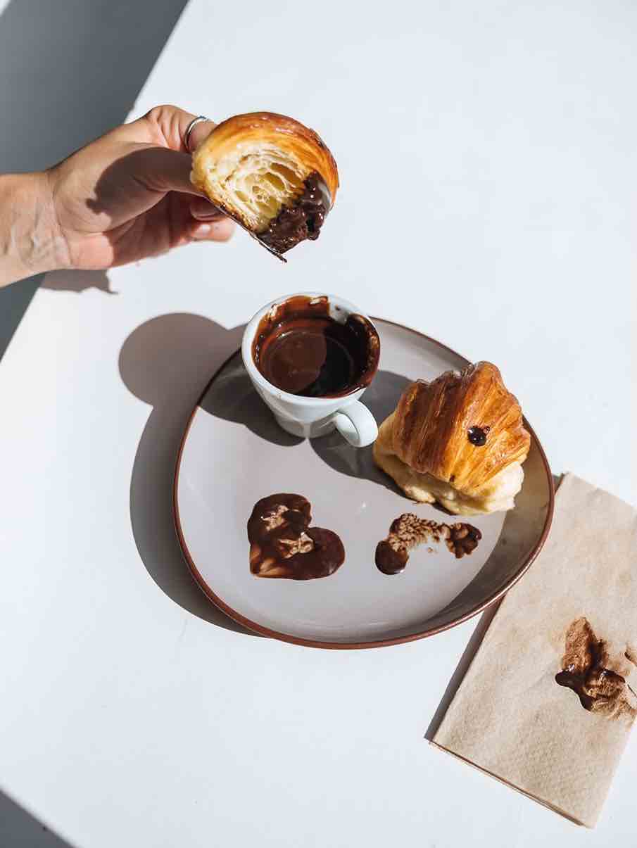 La propuesta acompaña ese espíritu relajado con una carta pensada para el brunch o la merienda, en la que conviven opciones simples pero bien resueltas. Hay tostadas, chipás prensados y una pastelería artesanal que cambia día a día, lo que siempre suma una sorpresa. El café, claro, también tiene su lugar central.