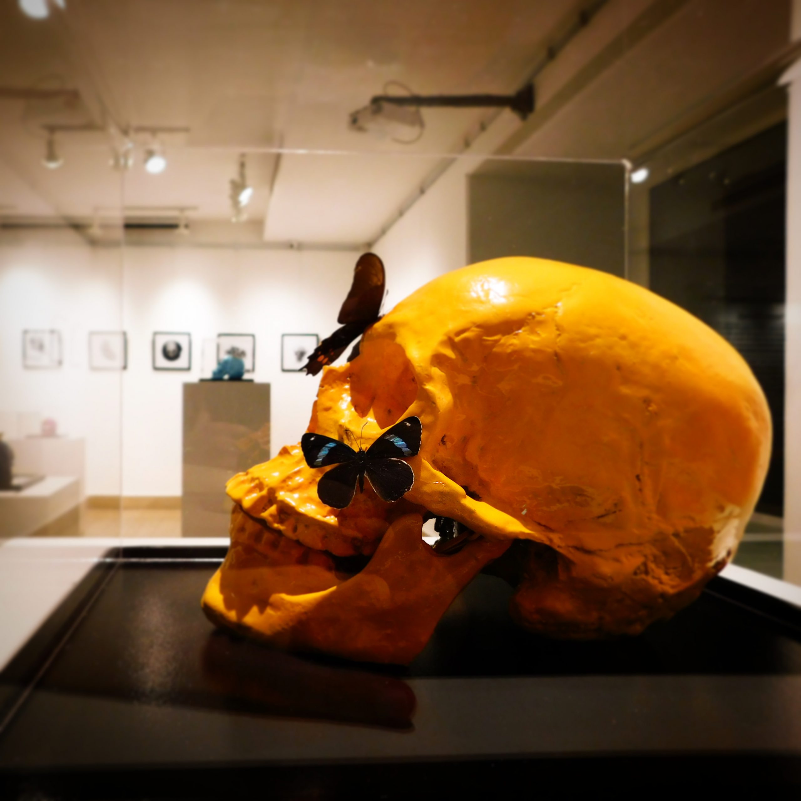 En cuanto al contenido y soportes que abarca la exhibición, podemos encontrar sobre los muros, obras en óleo sobre papel. En tanto las calaveras son un vaciado en resina utilizando para la matriz un cráneo natural; y las mariposas exóticas fueron traídas del Valle de Río Grande en Texas y de un mariposario en Veracruz, donde mueren cumpliendo con su ciclo natural. Como acción colaborativa para la preservación de las especies, el mariposario Xalapa y el artista, difundieron esta acción vinculada a la exhibición.