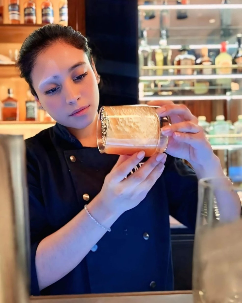 Entró como moza a The Garnish y, entre bandejas y preguntas, se fue metiendo. Preguntaba por cada cóctel, se interesaba por las recetas y empezó a estudiar. “La coctelería no es solo mezclar bebidas. Es transmitir algo con amor, con conocimiento, con técnica… para mí, es arte”, dice con los ojos brillando.