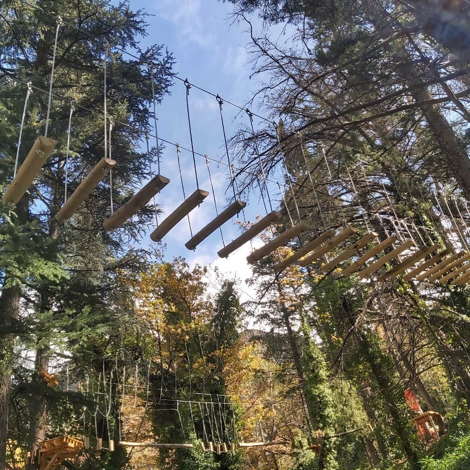 Arborismo: Se trata de un juego entre las copas de los árboles, ideal para todas las edades y para practicar de una fabulosa experiencia colaborativa y de team building. El circuito comprende 15 actividades entre diferentes especies arbóreas, donde los aventureros irán sujetos por un arnés desafiando cada tramo.