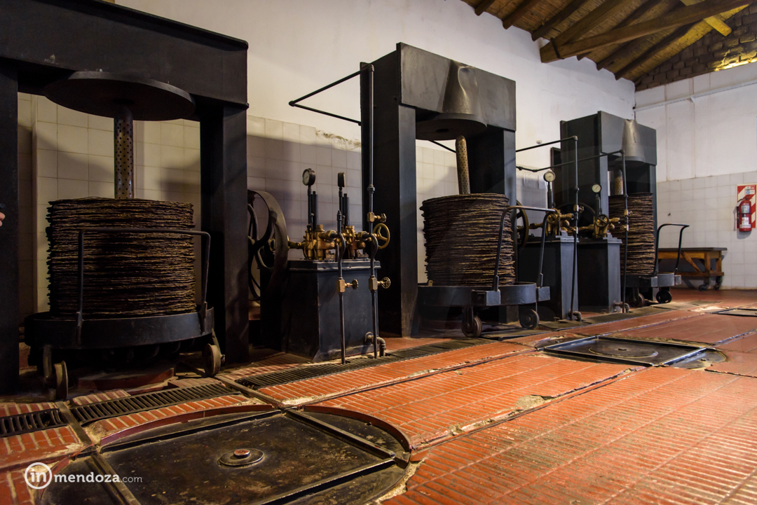 En la puerta de entrada a la planta de producción, encontramos una prensa de granito antigua con la que se molían las aceitunas, unos pasos más y en el interior, nos deslumbró ver la exposición de maquinaria del antiguo método de extracción del aceite. Todo está dispuesto como en aquellos años, hasta los rieles en el piso, por los que llevaban los carros cargados de aceitunas prensadas.