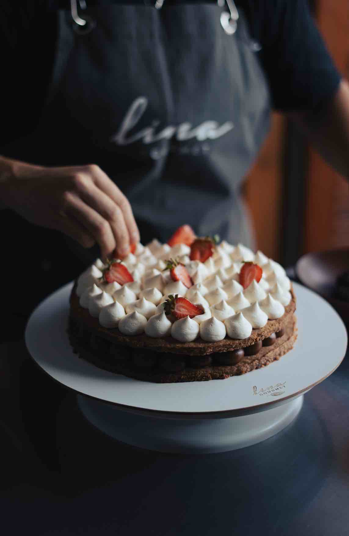Finalizar con frutillas, frutos rojos, chips de chocolate, flores comestibles y/o los toppings que más te gusten y prefieras. “Acá invitamos a jugar con libertad, pueden ir rulos de chocolate o cualquier otra fruta, va a quedar muy bien también”.
