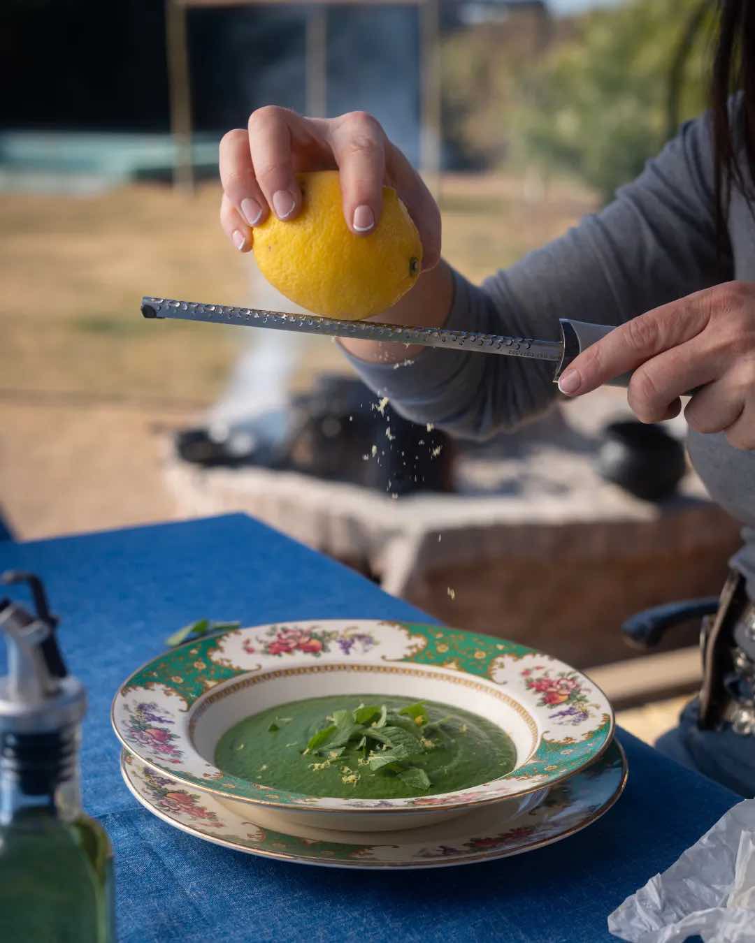Rectificar la sal y la pimienta y servir. Se puede terminar con hierbas de tu huerta y gotitas de aceite de oliva. «Esta sopa representa mi manera de cocinar: intuitiva, sensorial y enfocada en nutrir cuerpo y alma».