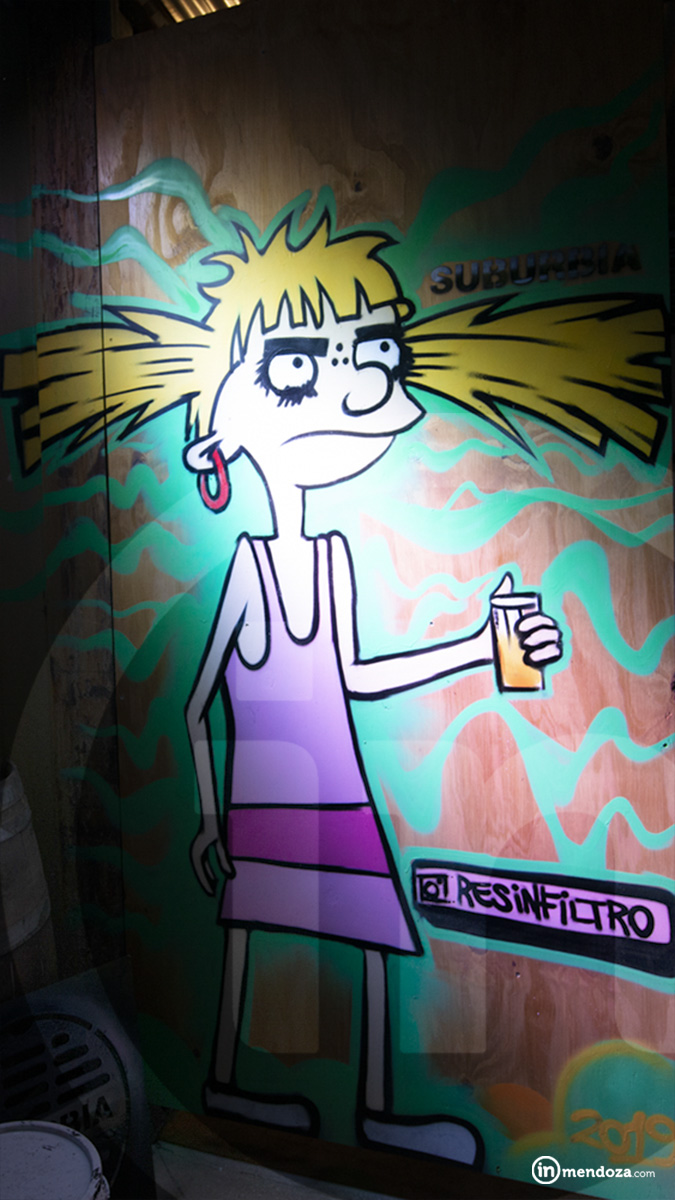 Desde ese momento, Resinfiltro empezó a «afinar el ojo para lugares chicos» y notó que «son una mina de oro» para su trabajo que despierta nostalgia en los transeúntes e imprime color y alegría a las calles. «Yo lo hago para mí pero al mismo tiempo, cuando termino de pintar, no me siento dueño del dibujo. La obra es de la ciudad, del lugar en el que está, del que pase y lo vea», confía el artista que le regaló a Suburbia Bar dos murales espectaculares; una Helga Pataki «pero en un día con resaca» y un Kruum, de Ay Monstruos!, con sus característicos ojos en las manos.