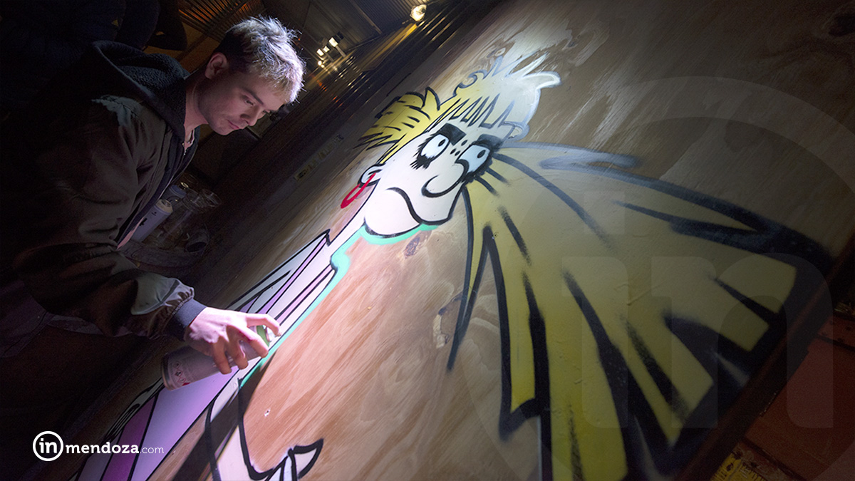 El artista grafitea los dibujos animados en paredes, kioscos y florerías de Mendoza.