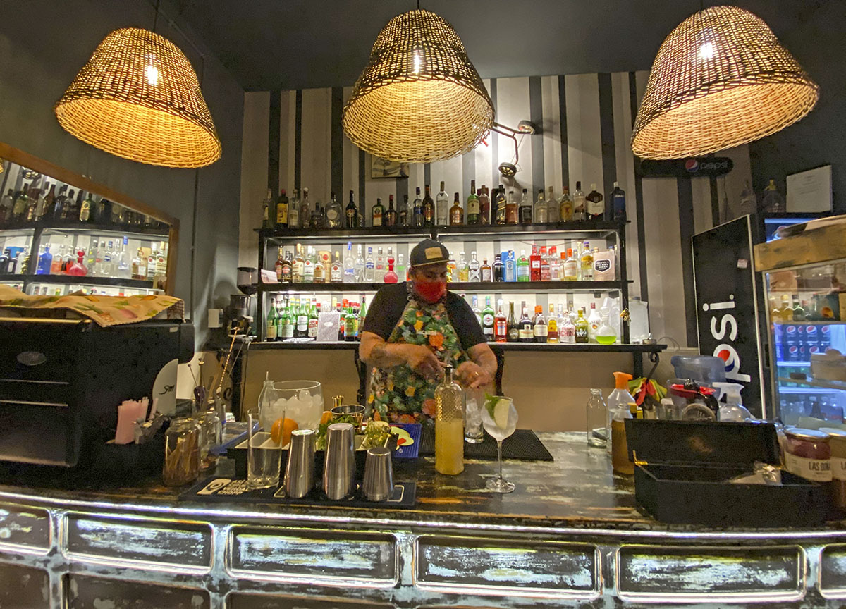 Facundo Macias nos recibió en la barra y nos recomendó su Tónico del marqués y Las monedas de judas