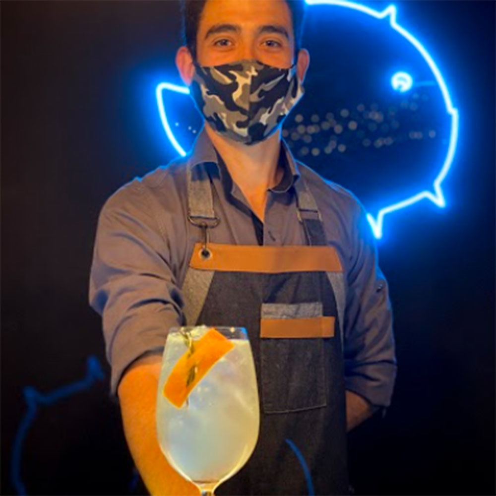 Renzo Piccione nos preparó dos opciones, una más rica que la otra. El Pez Tonic, elaborado con gin, biter de lavanda, sake, jugo de limón, almíbar y tónica, decorado con piel de pomelo y ramita romero.