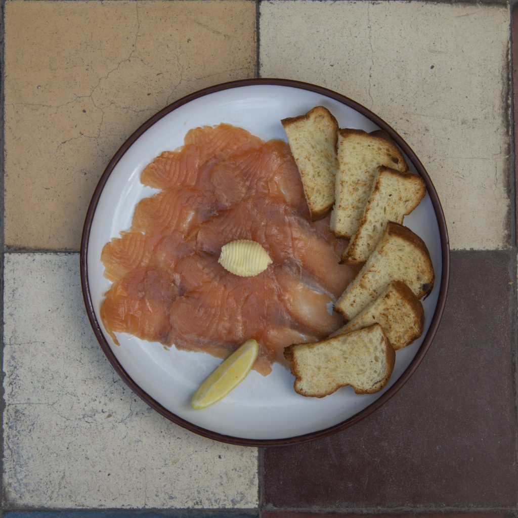 Para tentar a todos, el chef ejecutivo seleccionó tres platos ahumados deliciosos. Para iniciar la comida, una «Entrada Bistró» de salmón ahumado (120 grs.) con pan de brioche y rulos de manteca; acá uno elige si comer al plato con cubiertos o hacer bruschettas. Es acompañado con un gajo de limón para dar el toque ácido y es para compartir entre dos personas.