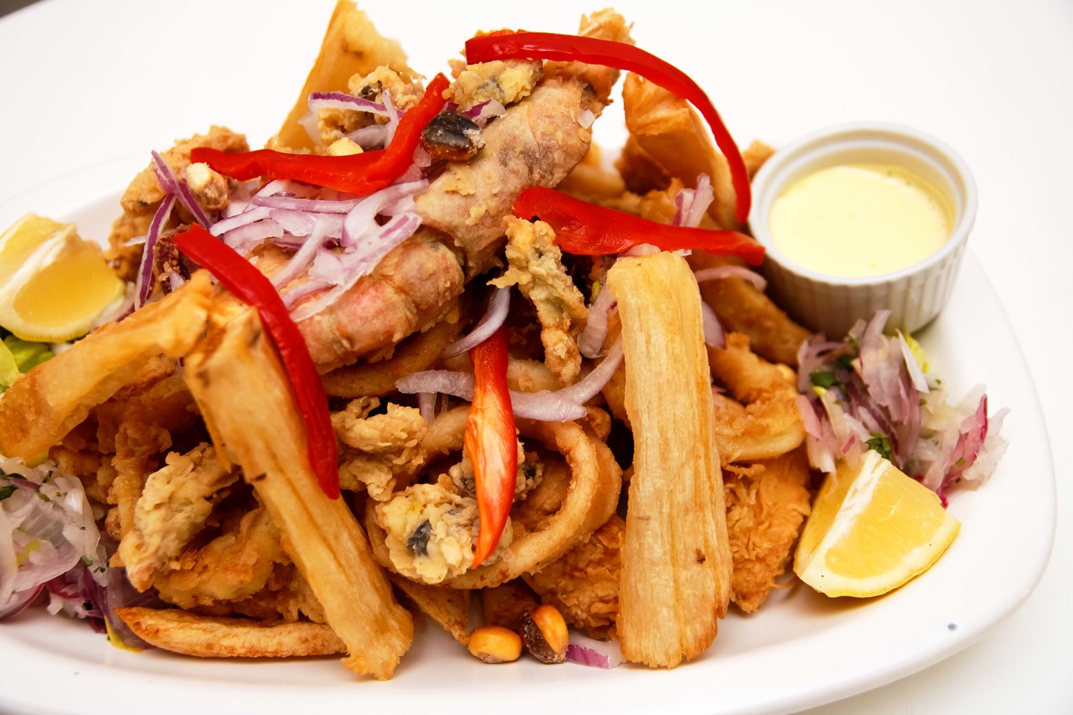 Se acerca Sol, «la» moza, para tomarnos el pedido. Ella es egresada de la Escuela de Gastronomía y es descendiente de peruanos. El dueño agrega: «Todo el personal o es oriundo del país o descendiente de peruanos. Buscamos que siempre tengan conexión con Perú para que conozcan bien la gastronomía». Le pedimos a él que nos recomiende qué sabores probar. De entrada, «degustación de ceviches» de gatuso, lenguado y salón; y de plato principal «Jalea de mariscos» pescado, aros de calamar y mariscos todo rebozado y acompañado de papas y mandioca frita; por último «pescado a lo macho» de salmón a la plancha con salsa de mariscos acompañada de arroz blanco y mandioca frita. Atentos a sus recomendaciones eso es lo que ordenamos.
