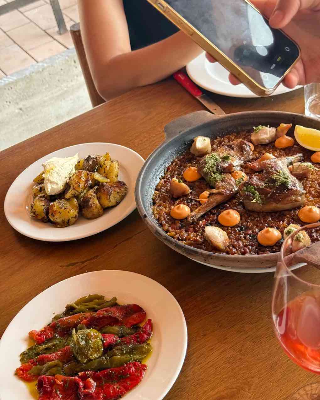 Seguimos probando y después llegaron los principales. Y acá sí: el arroz de montaña con conejo y azafrán fue EL plato. De esos que son reconfortantes y bien sabrosos. La carta tiene bastante de eso: platos al fuego, producto cercano, vegetales bien trabajados, propuestas como humita, papas al rescoldo, carnes a la parrilla… todo con una lógica muy de montaña, muy de estación.
