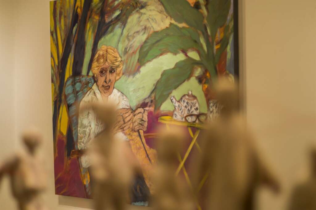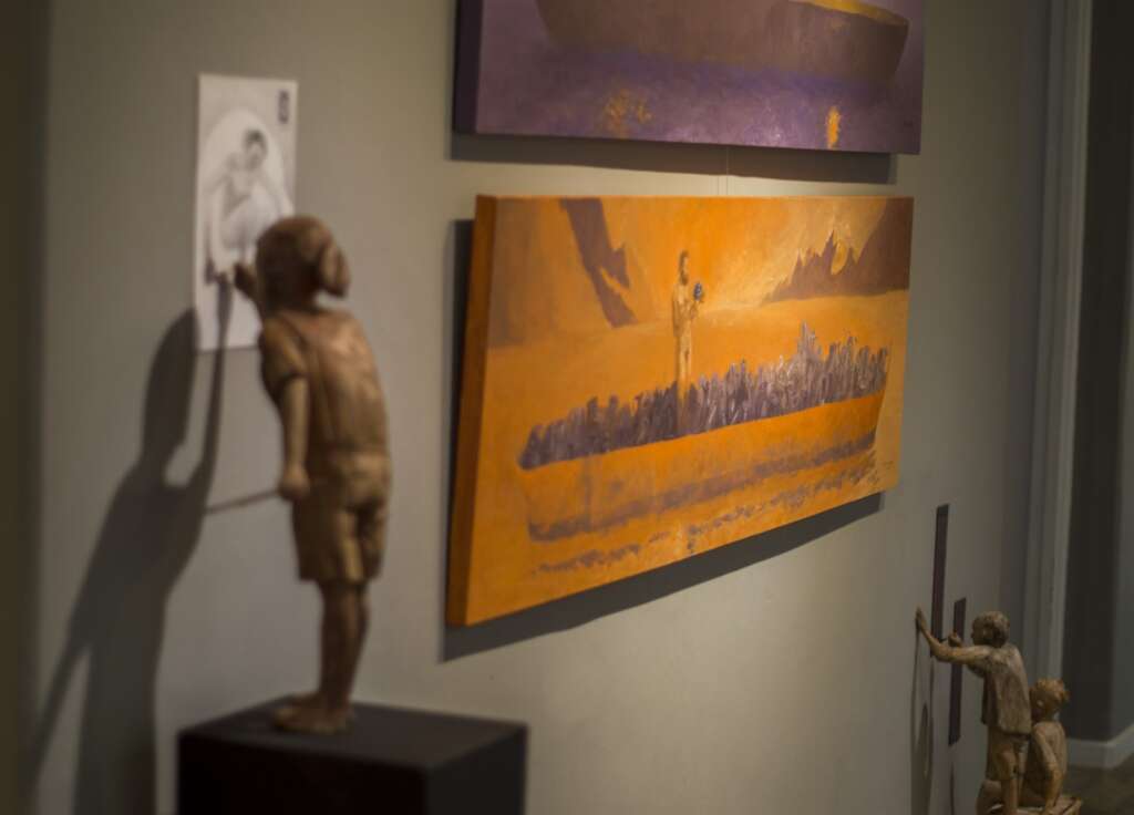 Por otra parte, también expone pinturas al óleo sobre lienzo, plagadas de figuras que señalan, apuntan o disparan a otros personajes ubicados en los cuadros. De esta manera, las obras dialogan de pared a pared, entre sí y también con las obras de los otros artistas.