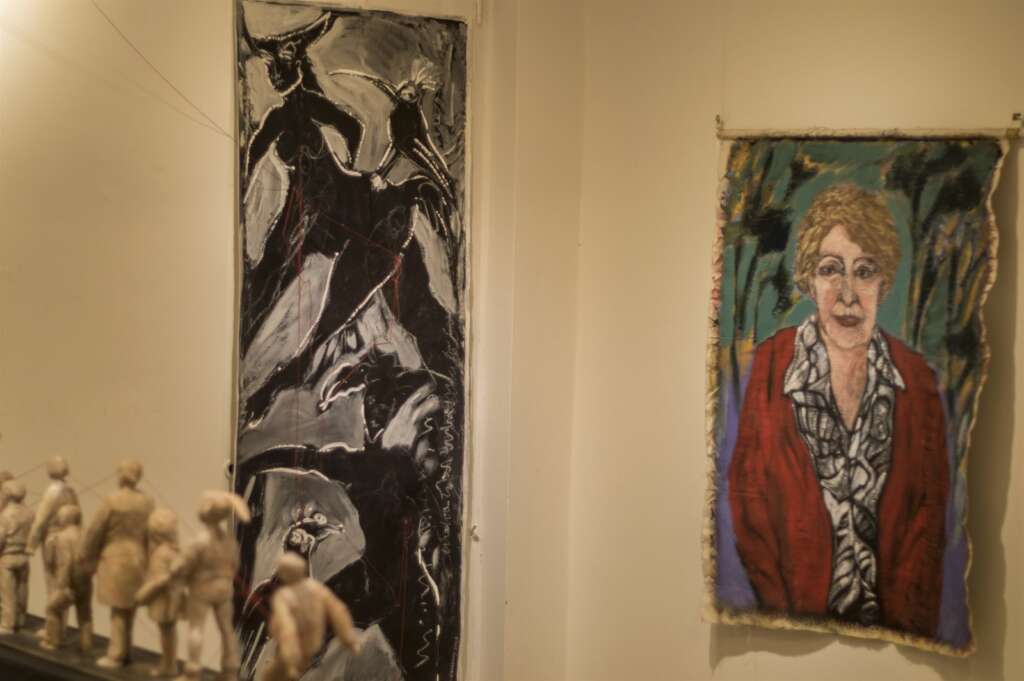 Entre las obras que se pueden ver a lo largo de la exposición toma protagonismo un rollo de 10 metros de largo plagado de dibujos y escritos. “Ese formato me permite fluir. Es como una libertad de conciencia, de libre albedrío, dibujar sin pensar mucho. Son cosas que afloran y las pongo. Me hizo muy bien ese juego y esa libertad. Y creo que también se trata de eso, de jugar y que sea algo lúdico, aunque nos interpele. A veces hay que quitarle seriedad a las cosas y también salirse de la comodidad. Eso me encanta y este grupo me vino muy bien y estoy muy agradecida”.