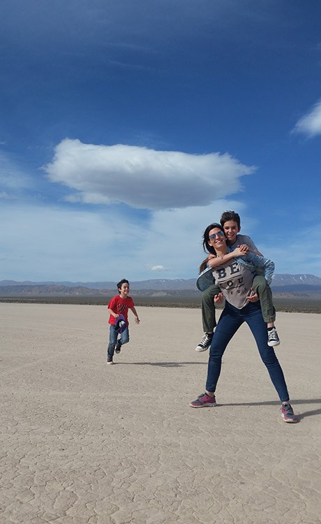 El camino pedregoso de montaña se convierte en asfalto y en lugar de ir hacia Uspallata tomás al norte, hacia la estancia San Alberto. Andás un rato por el valle que separa la Cordillera Principal de la Precordillera y sin advertirlo llegás a la Pampa del Leoncito. La tierra cuarteada de una planicie perfecta hace las veces de pista para diversos deportes de aventura.