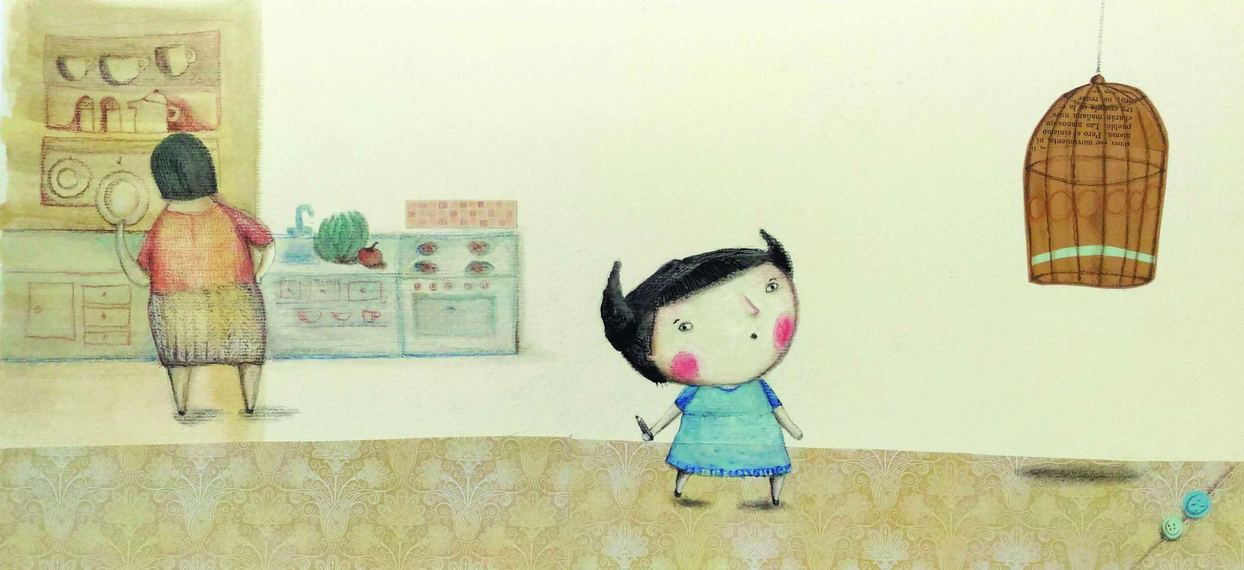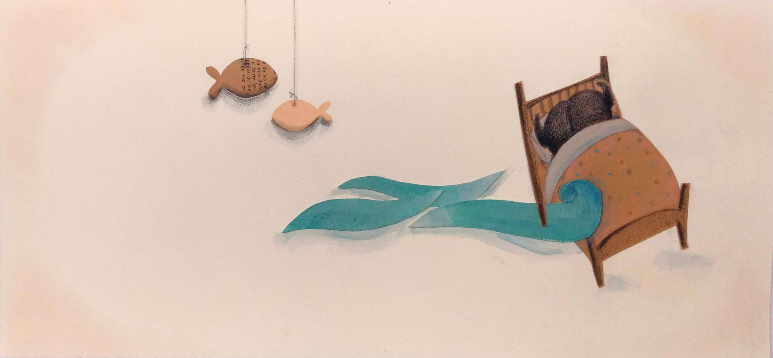 –Un mar para Emilia es un cuento corto. La Editorial Bambalí me convocó, después de una preselección de ilustradores, con la idea de que el resultado sea algo muy plástico. Como todos mis trabajos son analógicos y no querían nada digital les gusto la idea de que en mis ilustraciones suelo hacer una mezcla de técnicas, que uso lápiz, óleo, acuarela, tinta, papel. Me gusta mucho la caligrafía, incluir texto en mis dibujos. Me gustaría que con este libro sea el comienzo de algo, que no sea el primero.