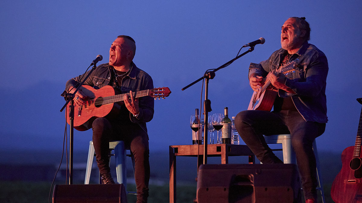 Con el crepúsculo llegó el momento más esperado, en el que el front man de Vanthra y Catupecu Machu junto al enólogo y músico de bodega Monteviejo hicieran de las suyas guitarra en mano.