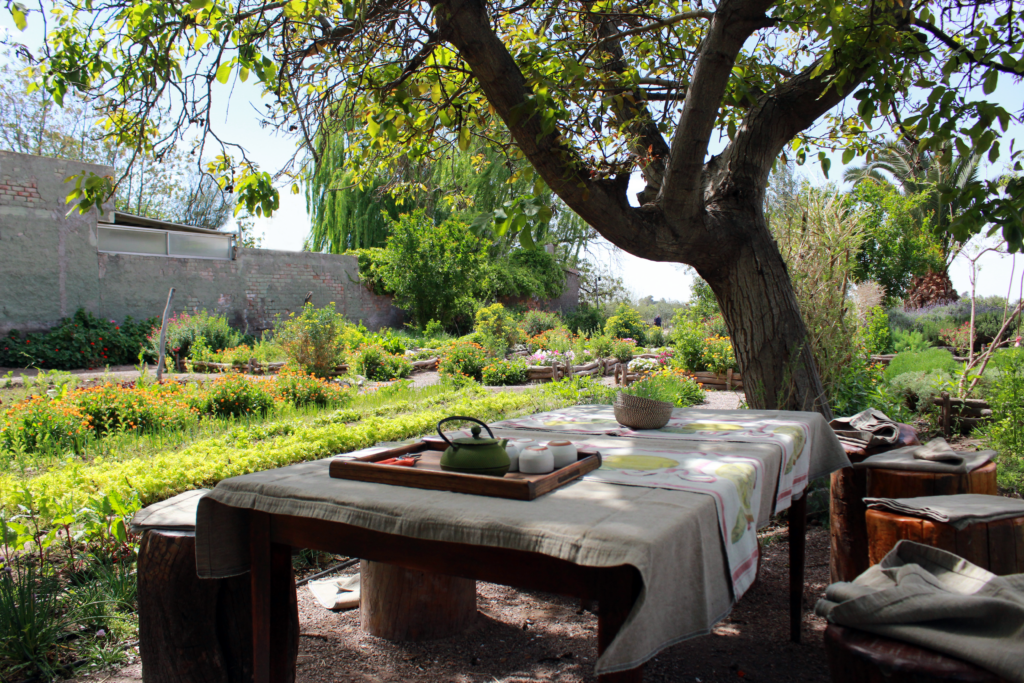 En un recorrido bajo el cálido sol de primavera conocimos mentas en todas sus variedades, degustamos la flor más picante y la más dulce. La expedición por la huerta terminó con una infusión de hierbas elaborada por Maxi bajo la sombra de un manzano en flor. De las partes más bonitas de la experiencia.