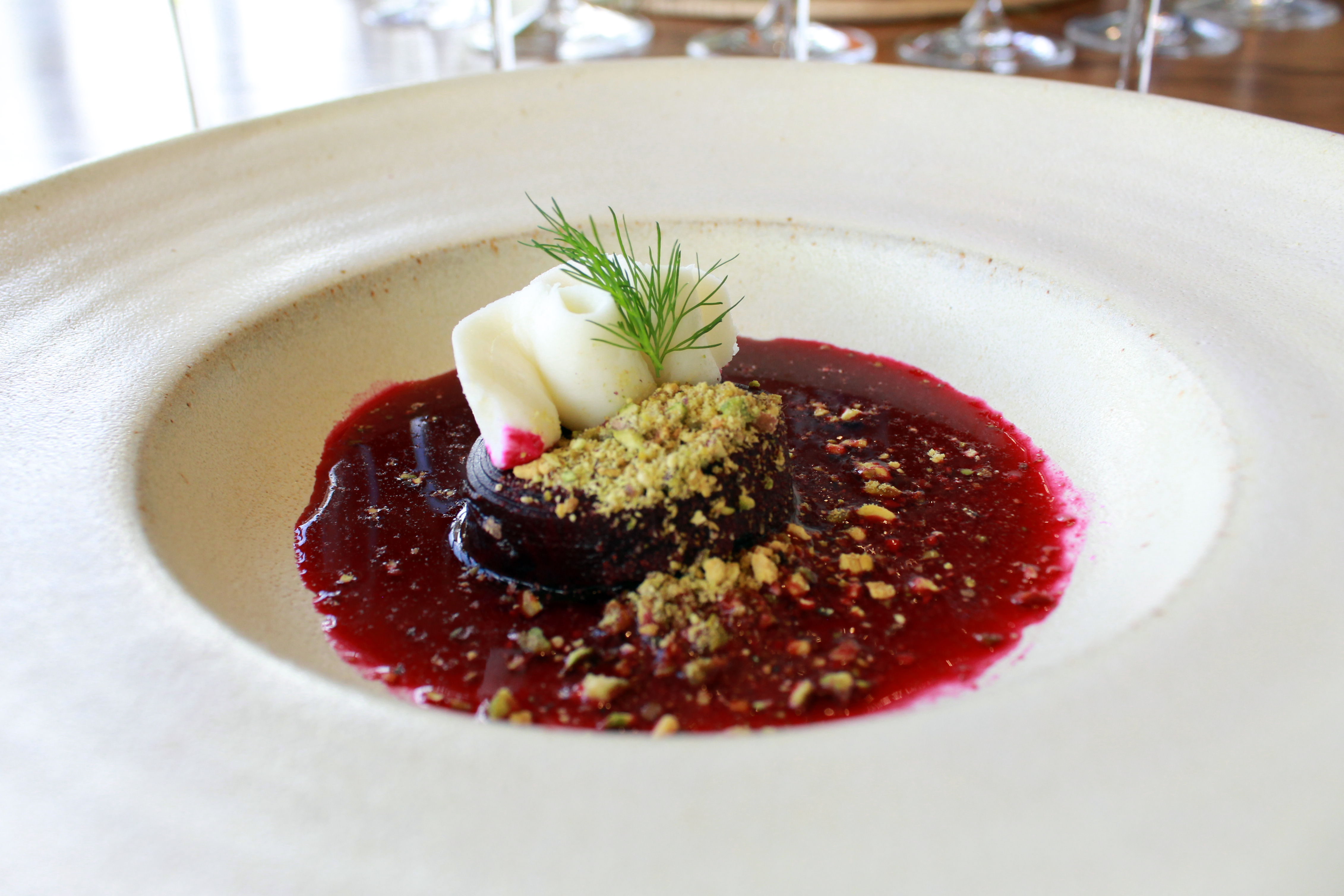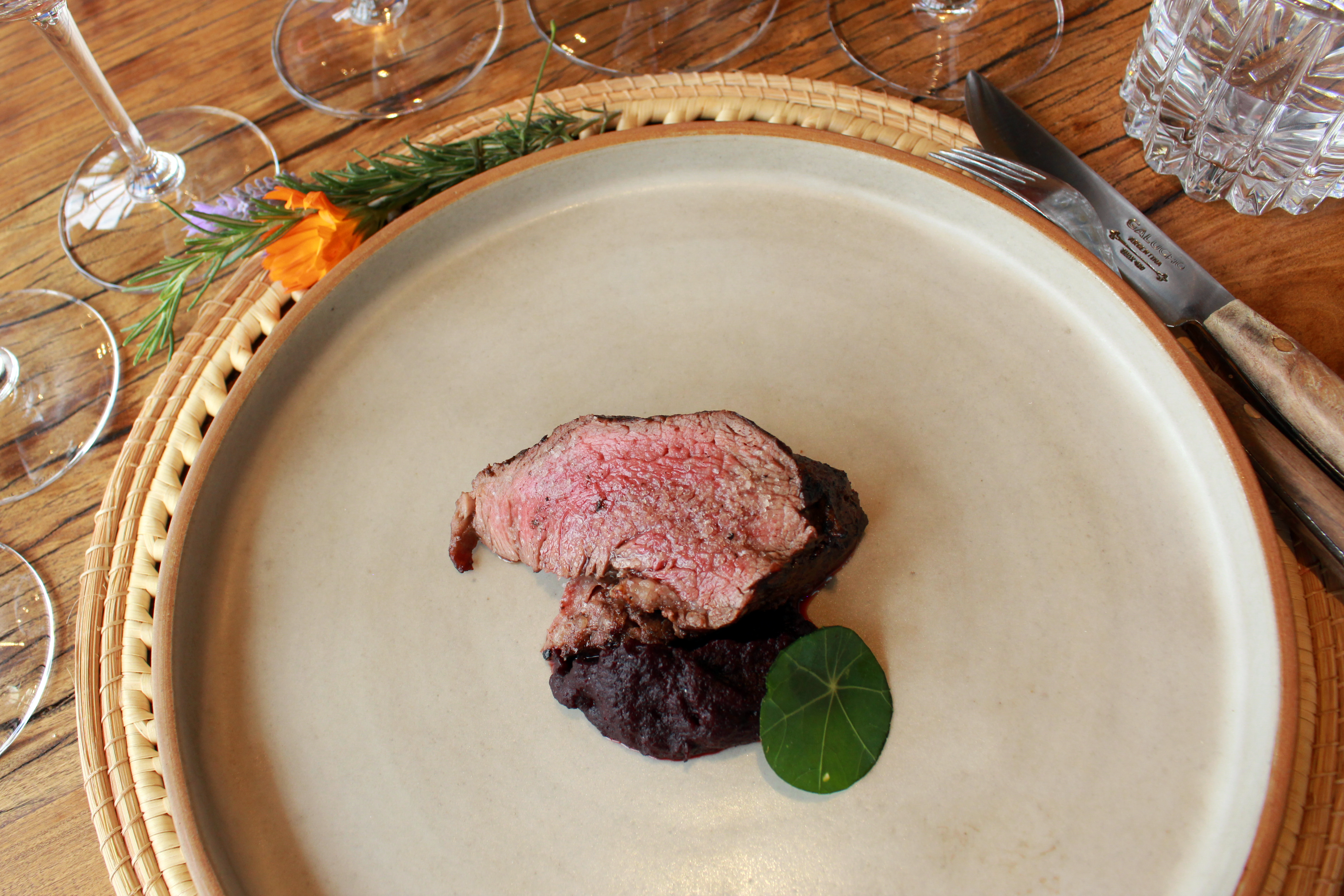 El segundo consistió en un carpaccio de remolacha, espuma de queso de cabra, un crocante de pistacho molido y eneldo. El plato se terminó en la mesa con un coulis de remolacha y pinot noir. Un paso que primero sedujo por su apariencia a la vista y luego por la conjugación de colores, texturas y sabores. El carpaccio estuvo acompañado de un Chardonnay “Proyecto las Hermanas 2023” con su característica de ser de un terroir de Gualtallary lo que aporta notas de sabor particulares de la zona.