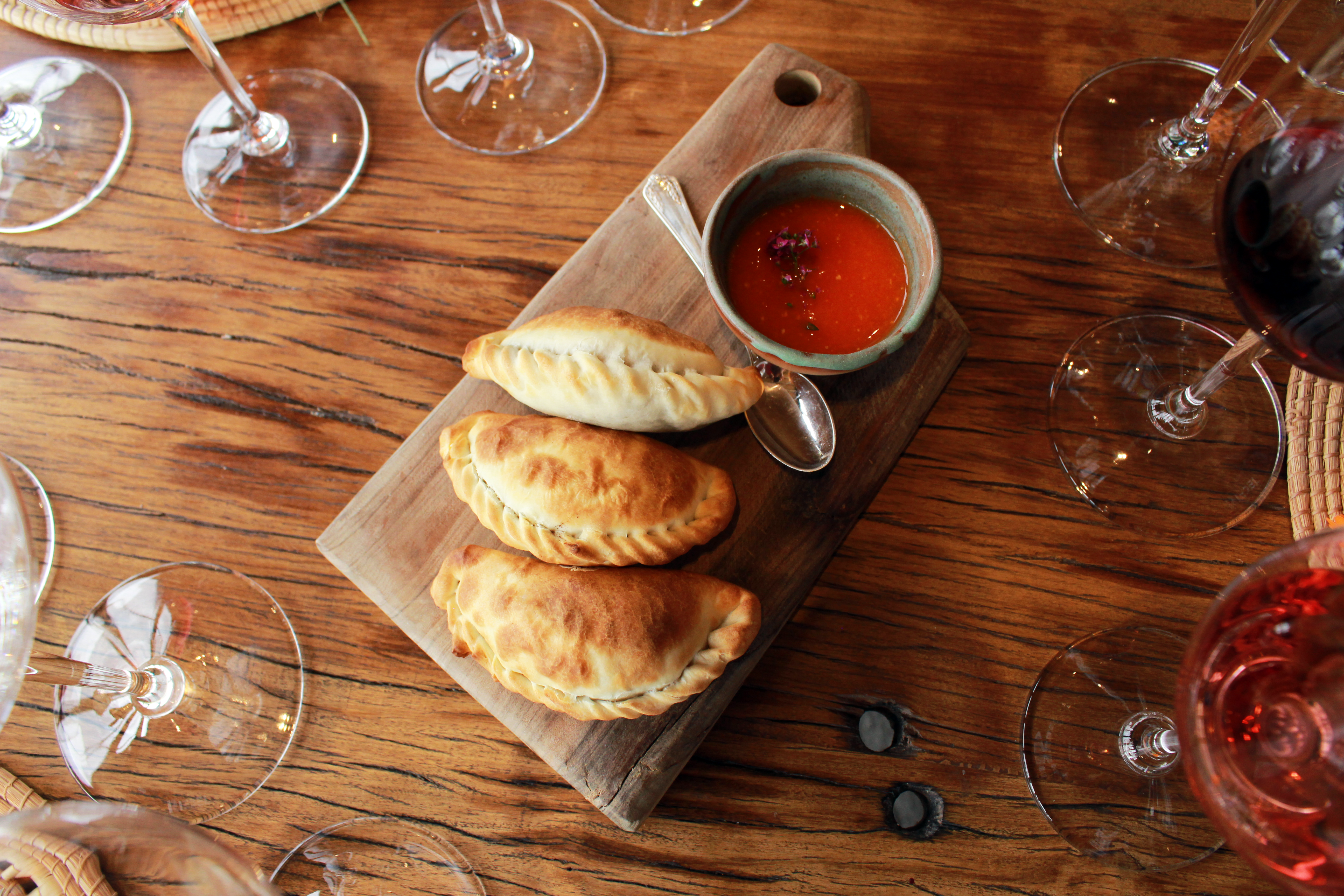 En esta parte de la experiencia llegaron nuestras empanadas, a decir verdad nuestros repulgues, con una exquisita salsa picante de ajíes. Aquí se nos presentó un vino Primeras Viñas Malbec 2020. Perfecto para acompañar aquella fiesta de empanadas y picor en boca. Una grata experiencia para el comensal degustar algo en donde nuestras manos intervinieron, hacen del momento algo pintoresco.